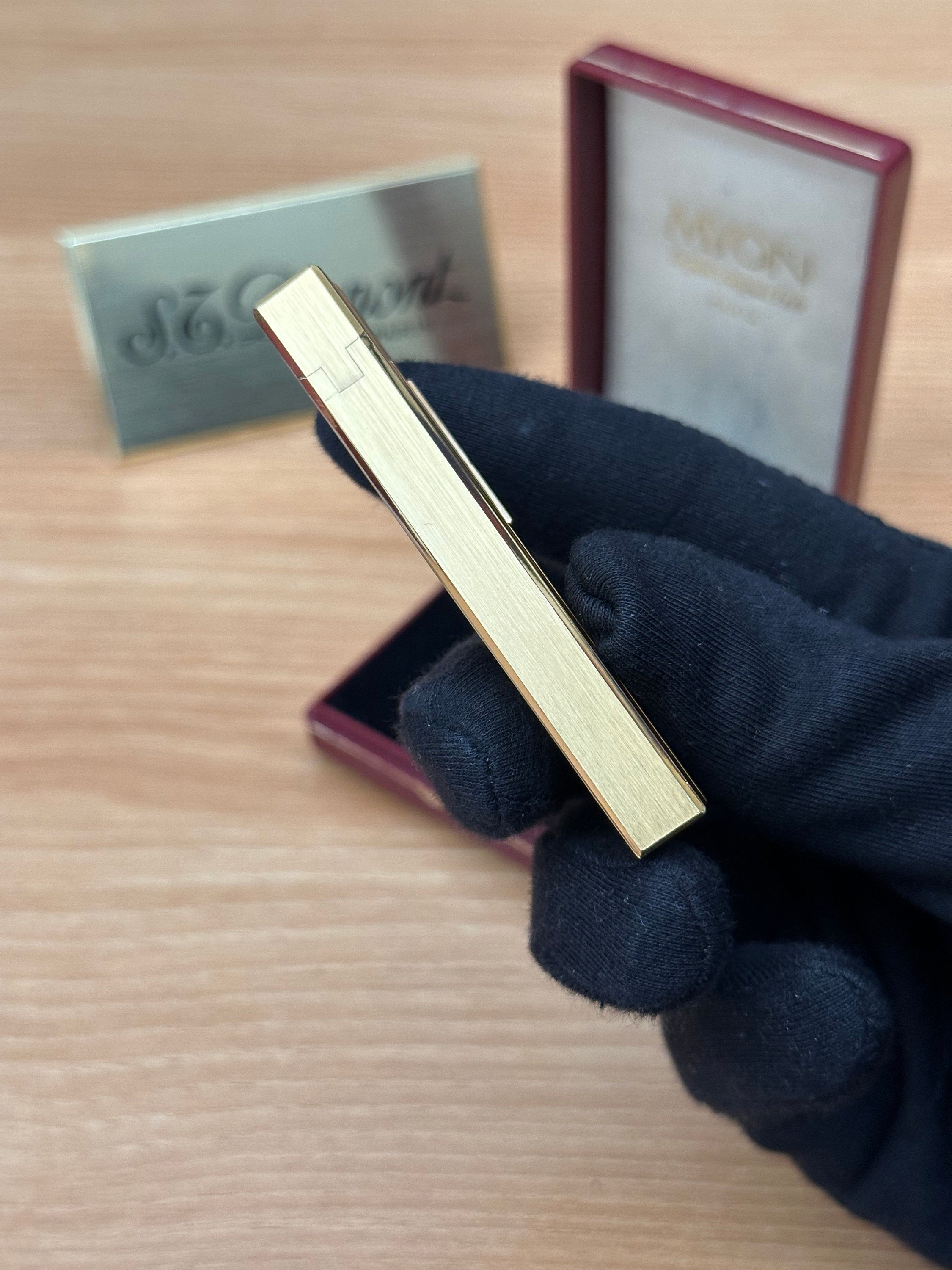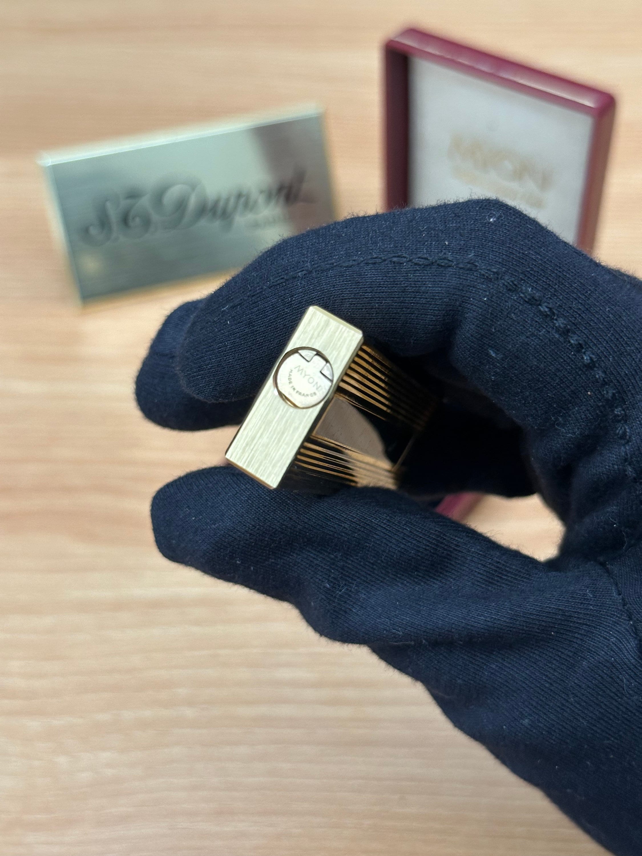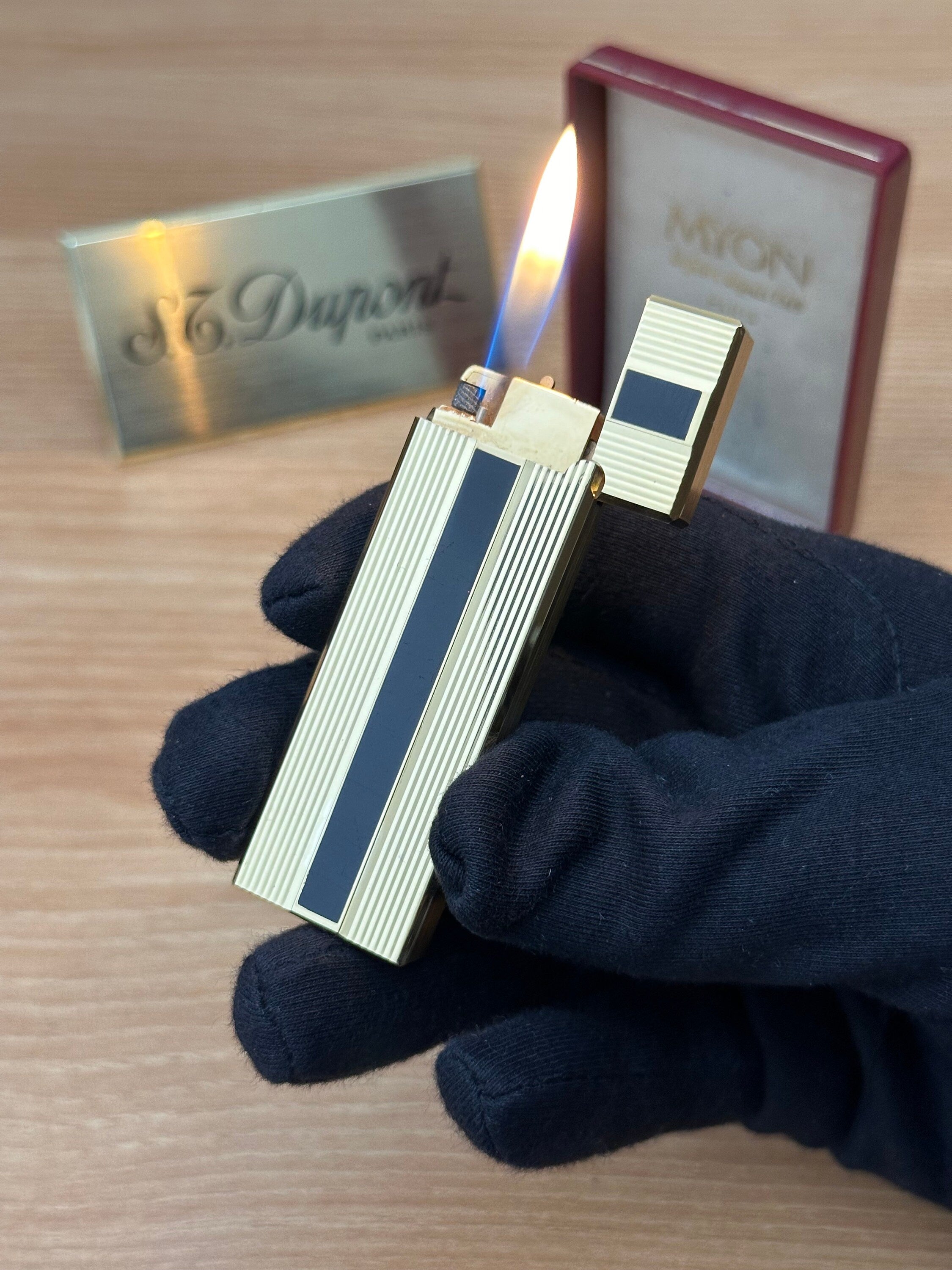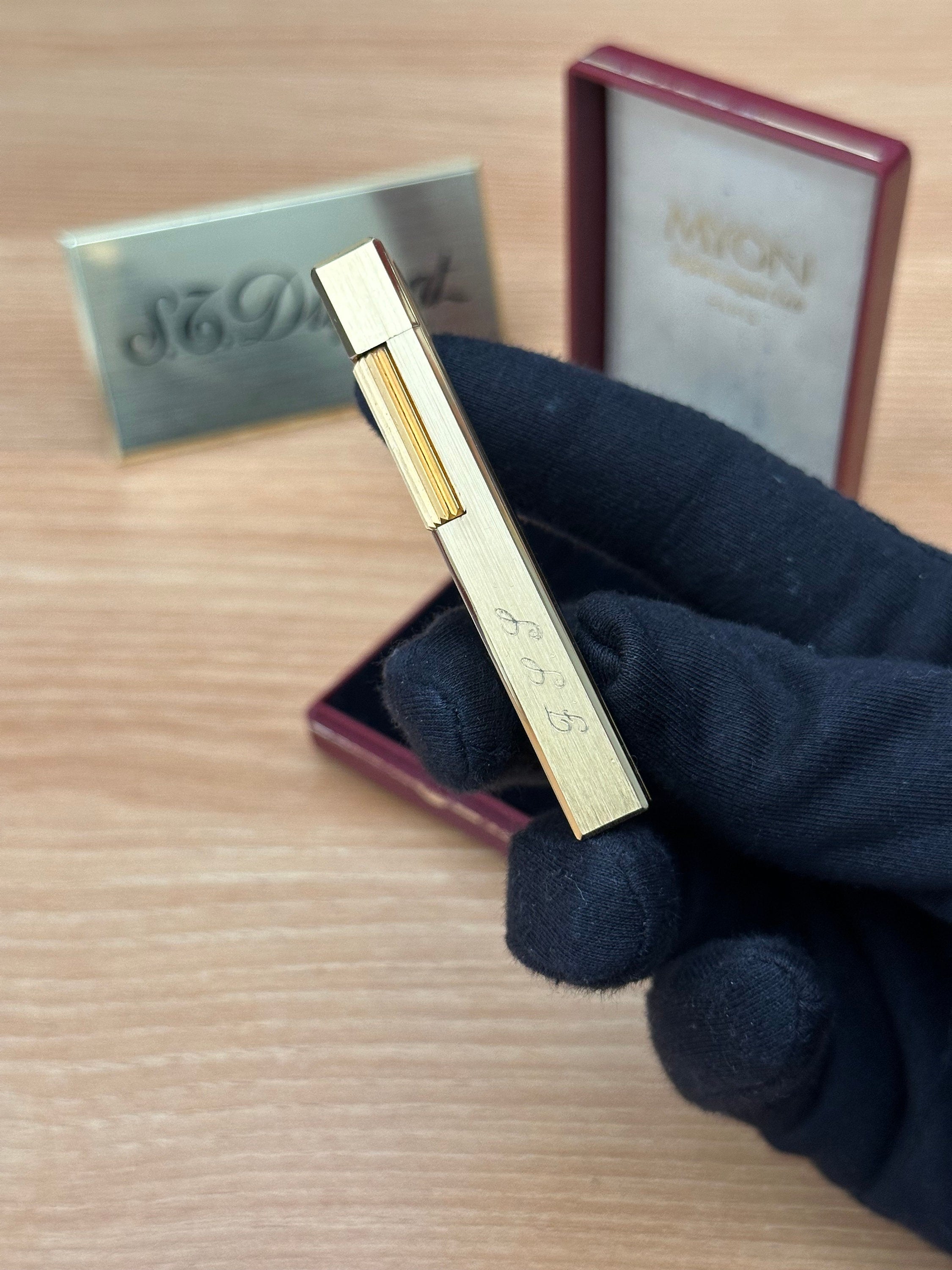 Vintage 1980 Myon Feuerzeug Paris Gold Finish Schwarzlack mit Box / mit Initiale