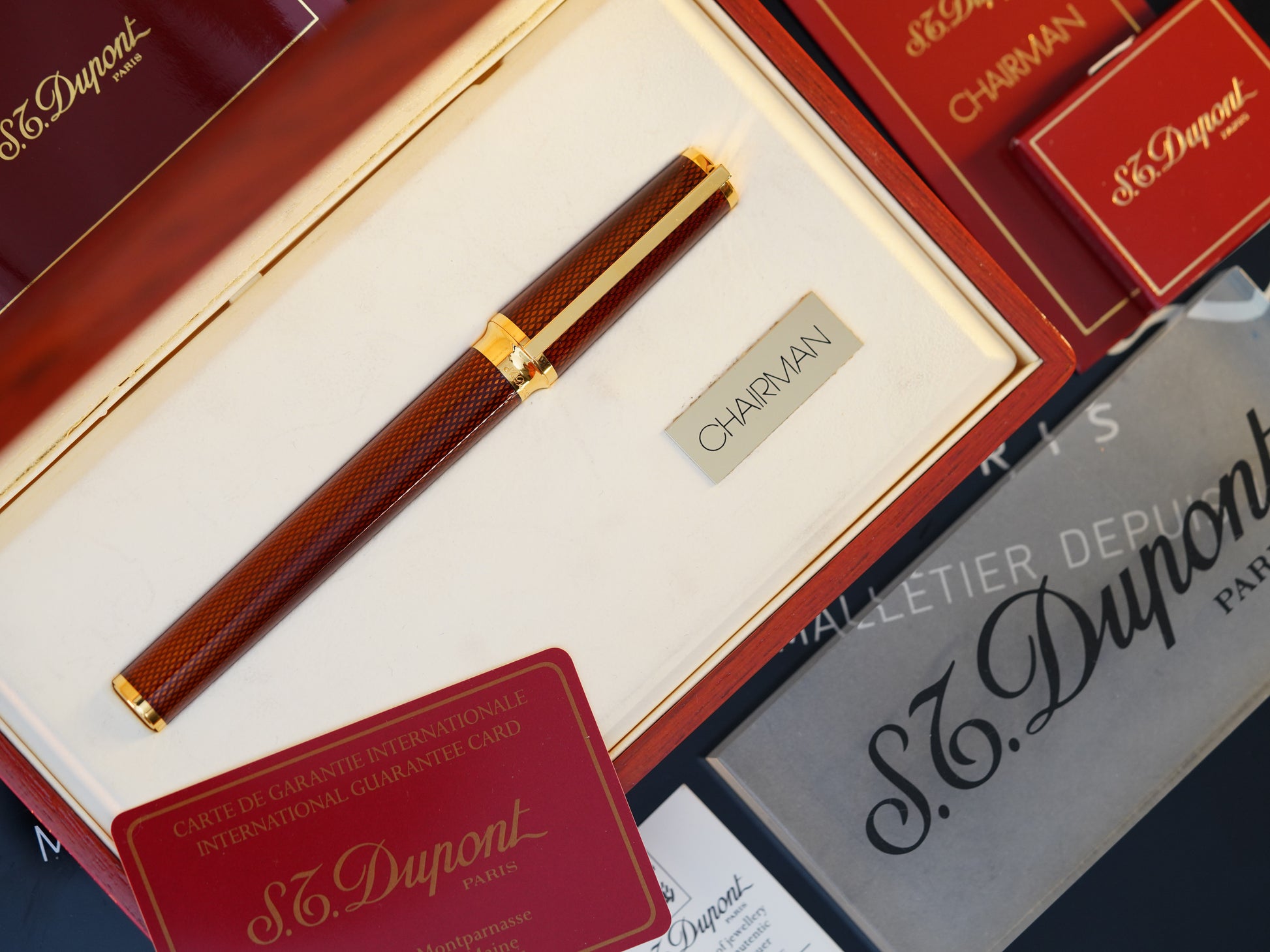 Owning a vintage luxury pen is a statement; using one is an experience. Each pen in our collection is a singular piece, a testament to S.T. Dupont's dedication to the artistry of writing. All items are new unless otherwise noted, and we are proud to offer a 12-month guarantee on working condition. From the precision of the ink flow to the weight of the pen in hand, every element is crafted to offer both beauty and balance. With detailed finishes like gold-plated clips, intricately guilloche bodies, and hallmark lacquerwork, these pens reflect both the French luxury heritage and the individuality of their owners.