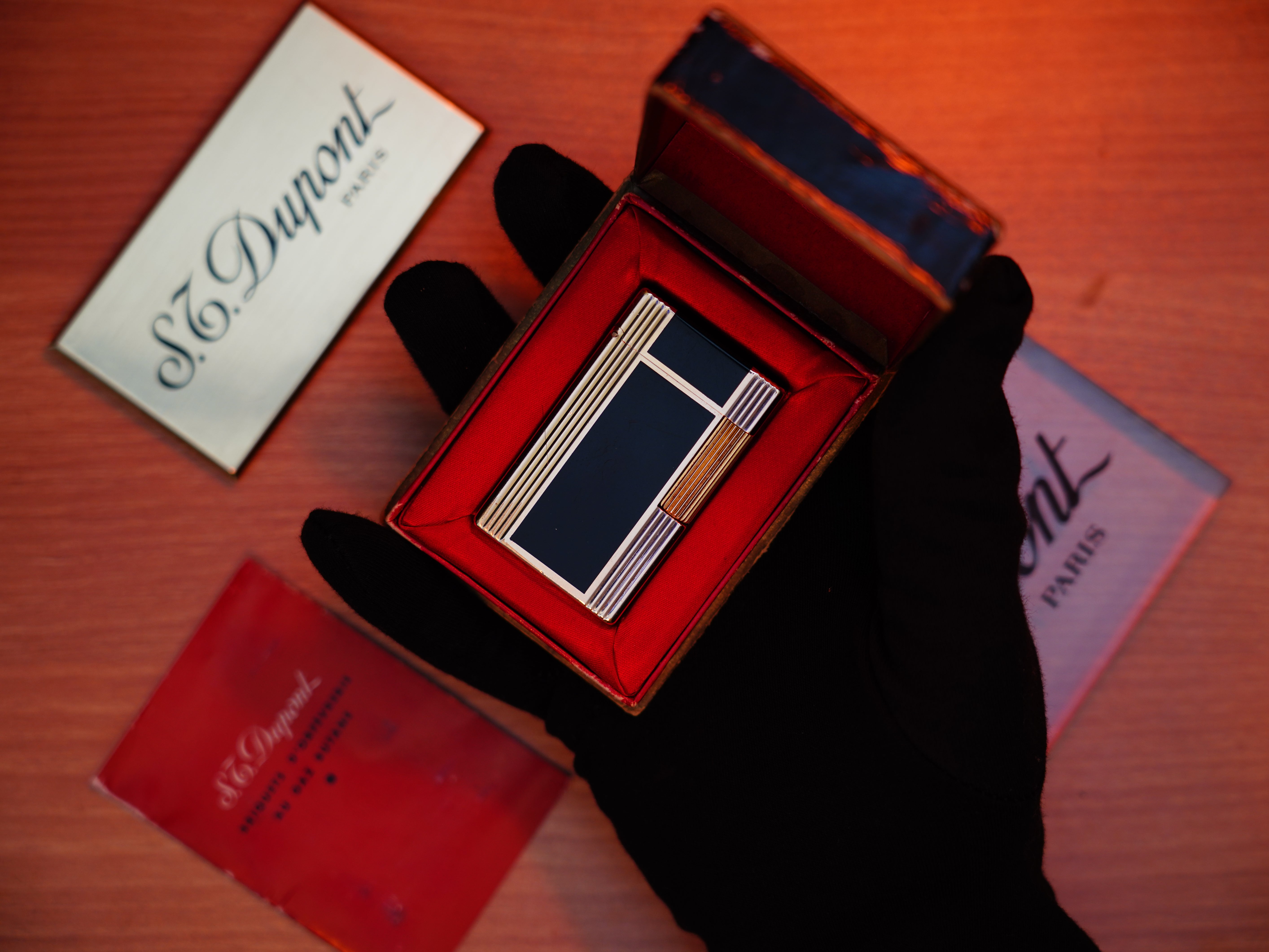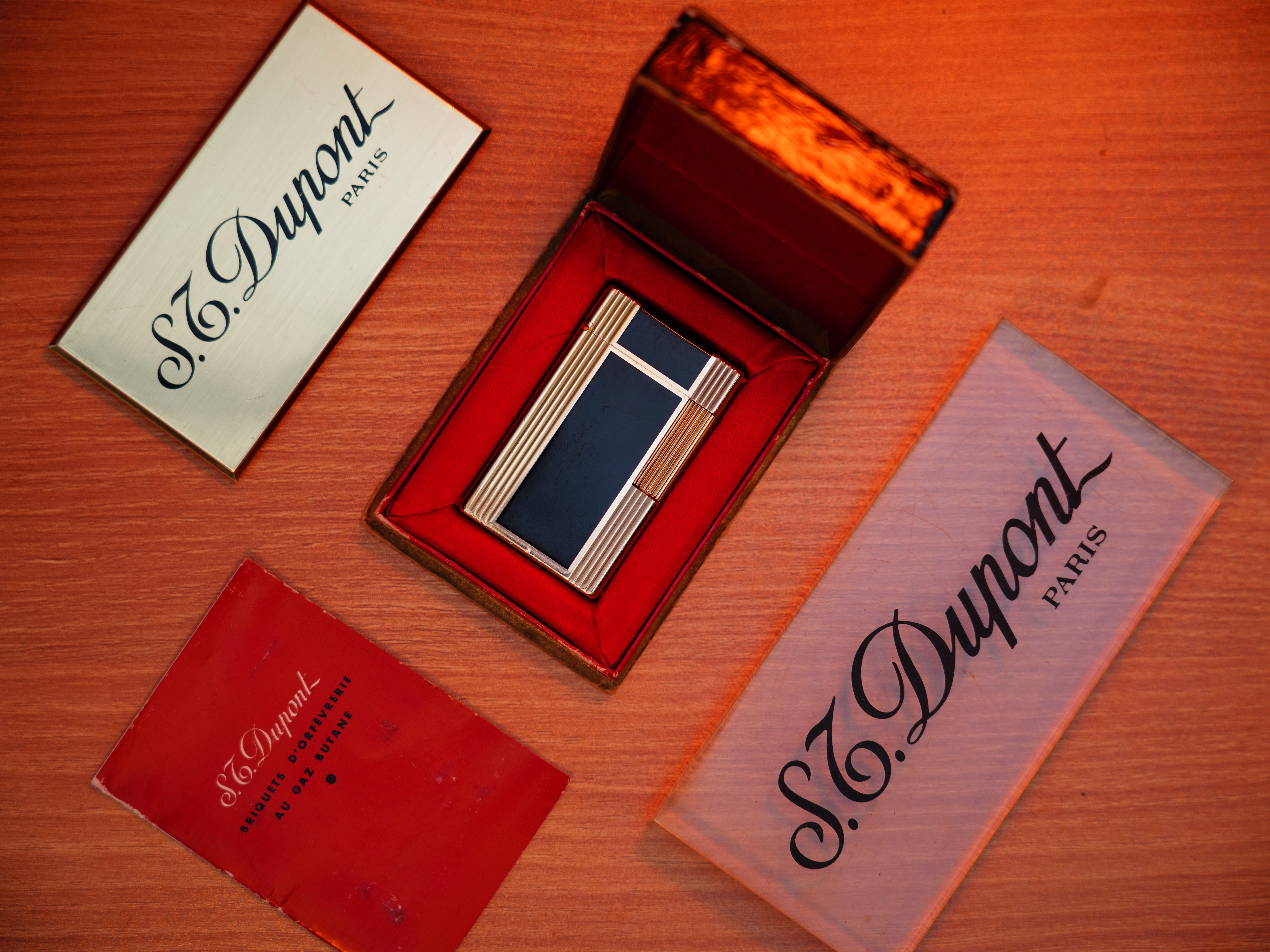 Vintage 1960 St Dupont Ligne 1 Heavy 24k Gold Finish and natural lacquer Large Size / Full Set with box and document